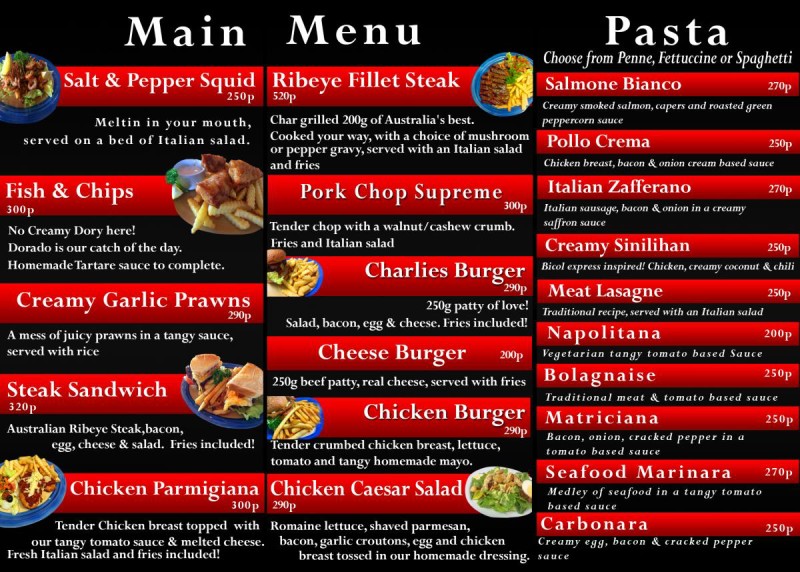 Previous Image Next Image Charlies-on-the-Bend-menu These Adverts help to pay for this site. ai1 1 : 453 : 3,750,477 These Adverts help to pay for this site. ai2 © 2020 ABCDiamond Hosted at DreamHost